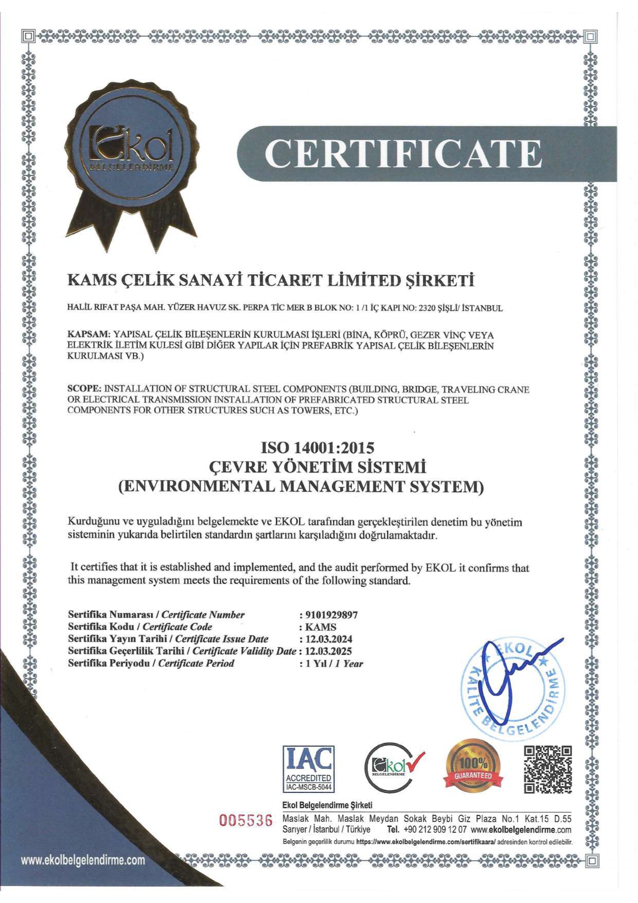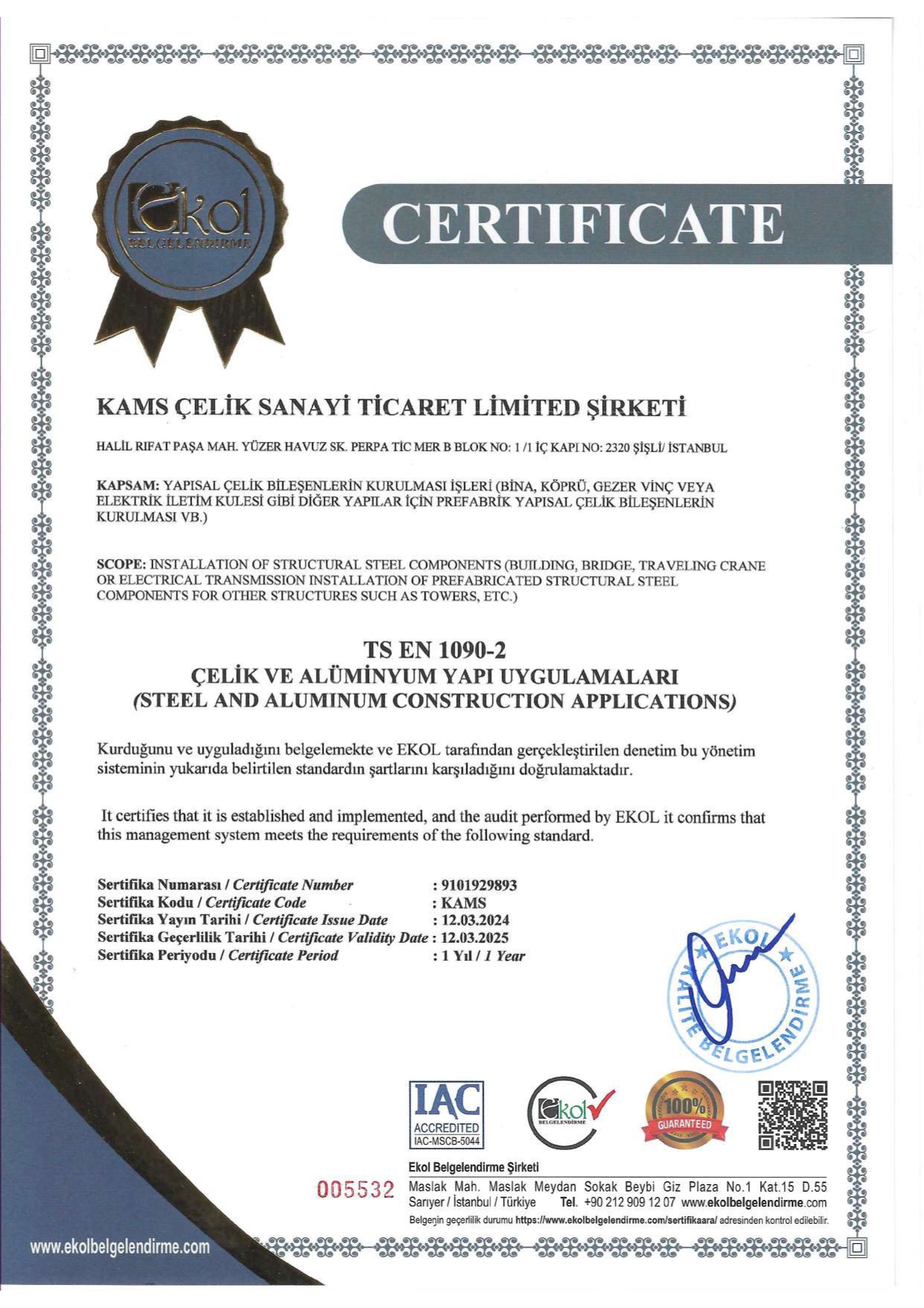 SERTİFİKALAR