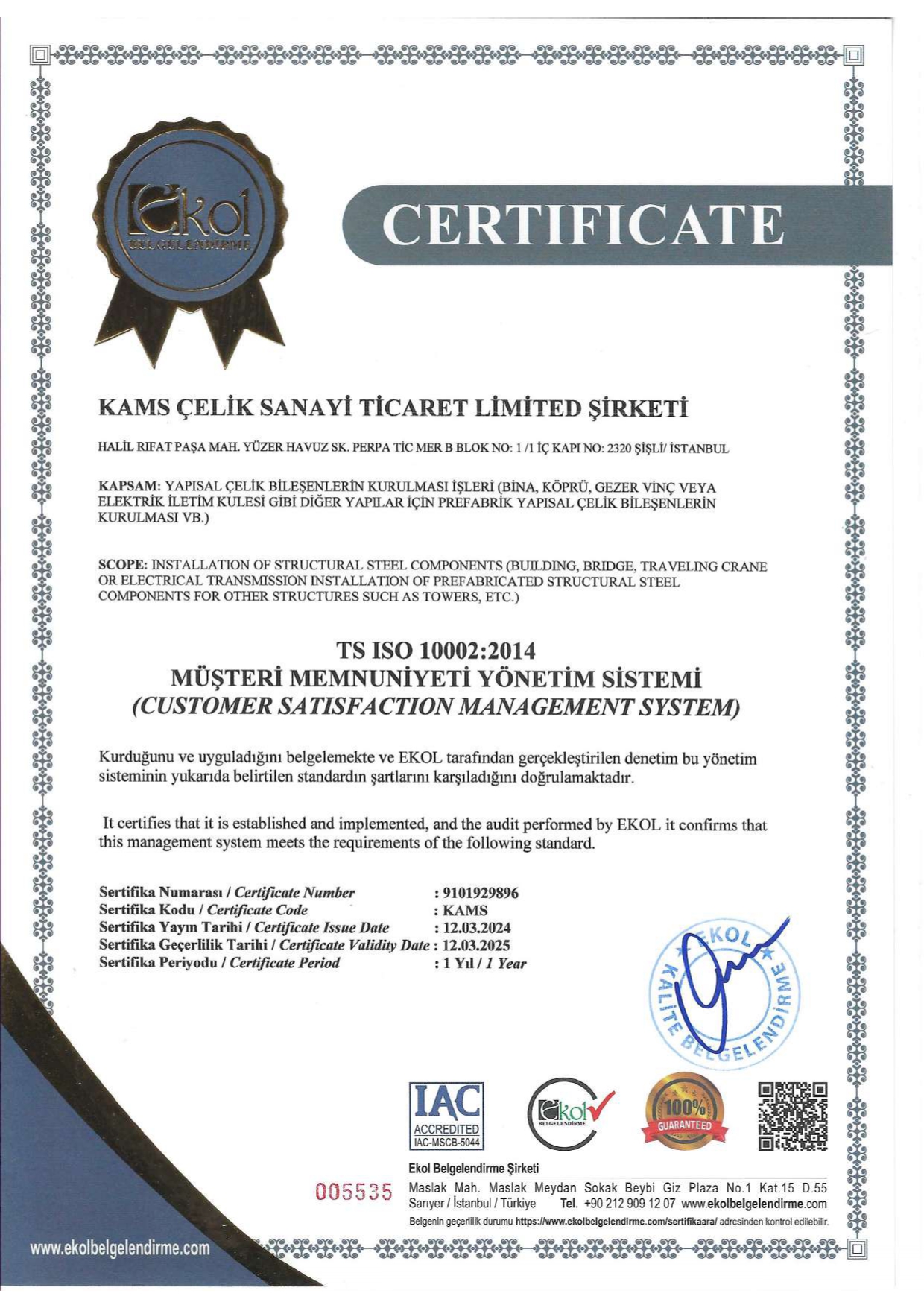 SERTİFİKALAR